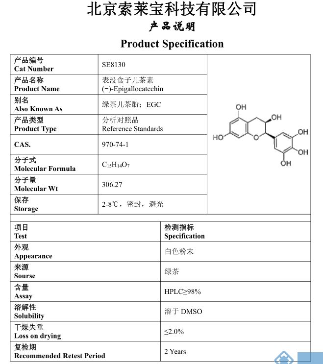 产品名称: ()-Epigallocatechin/EGC;表没食子儿茶素