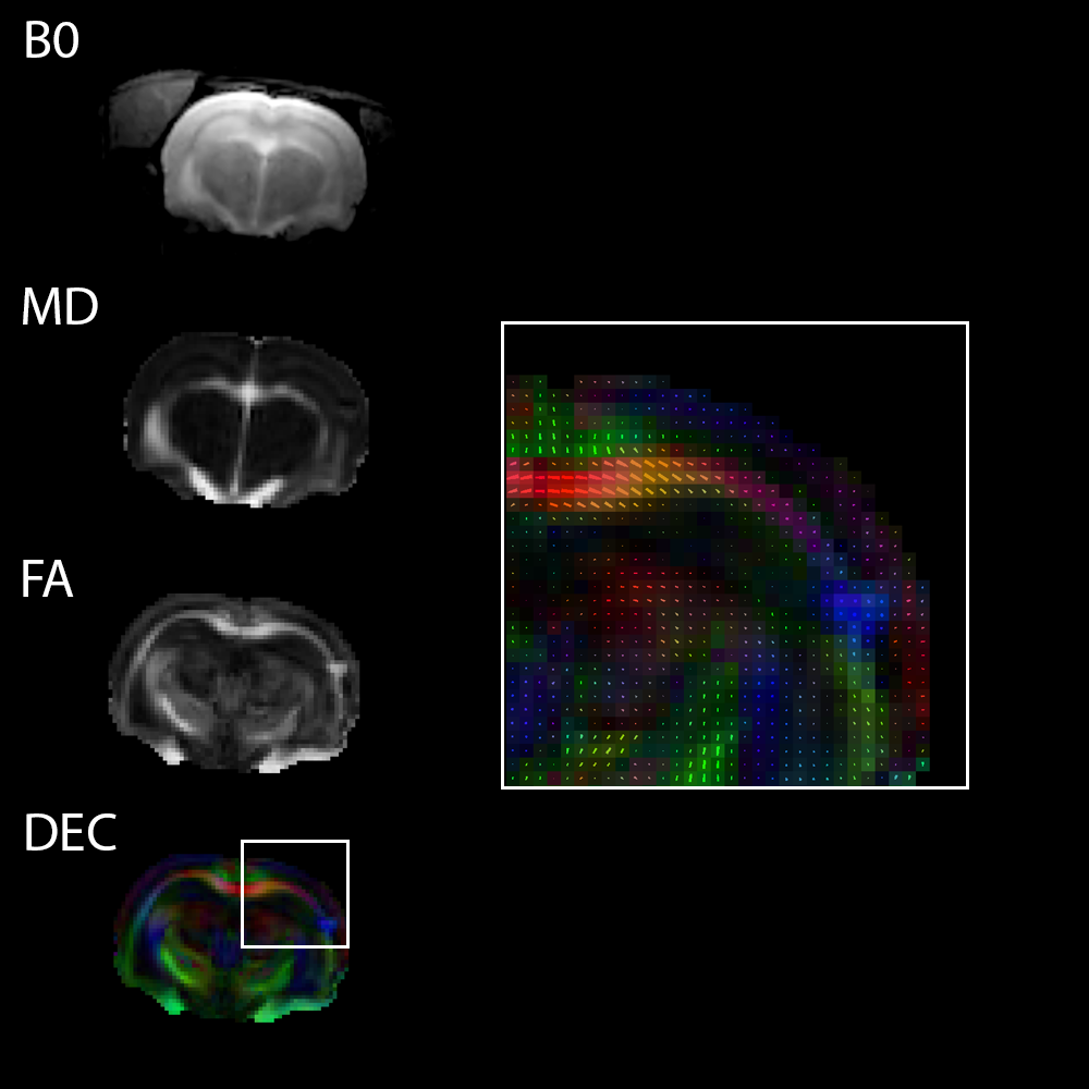 大鼠脑组织在3T磁场下进行单次DTI EPI成像